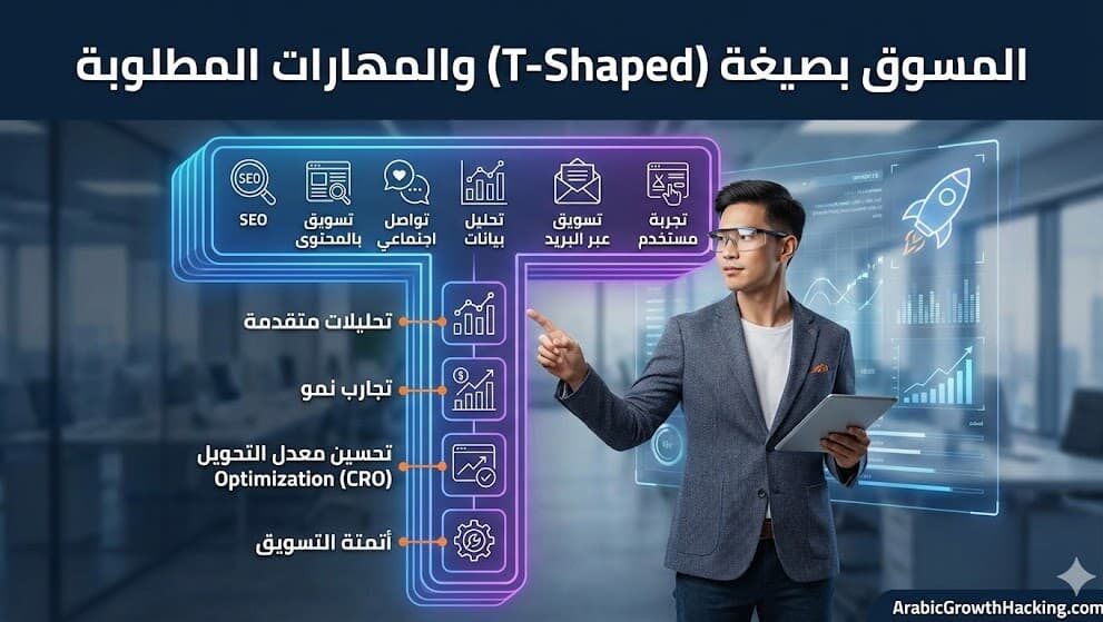 يشهد سوق العمل الرقمي تحولاً جذرياً في نوعية الكفاءات المطلوبة لقيادة النمو في الشركات الحديثة والناشئة. لم يعد الاكتفاء بالتخصص الدقيق في قناة تسويقية واحدة كافياً لضمان الاستمرارية أو تحقيق نتائج استثنائية في بيئة شديدة التنافسية. الشركات اليوم تبحث عن عقول قادرة على الربط بين التخصصات المختلفة.